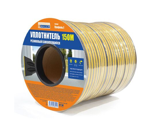 Уплотнитель для окон и дверей Е-профиль(резиновый) на клейкой основе черный