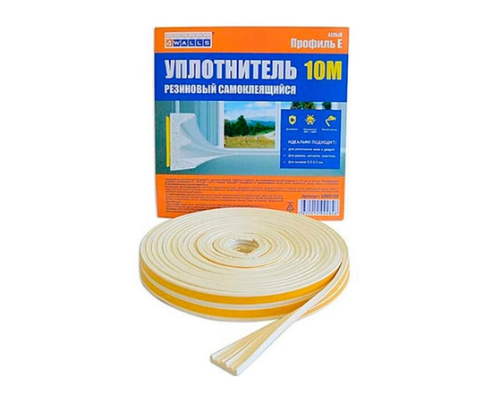 Уплотнители для окон Е-профиль (резиновый) на клейкой основе белый 10м /100 4WALLS