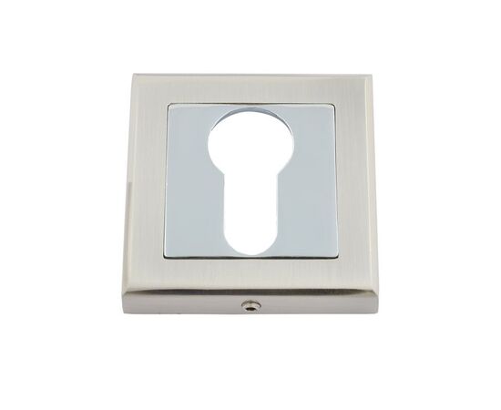 Комплект из 2х накладок на деревянные двери, модификация - под цилиндр. Форма розетки квадратная. Материал изготовления - алюминий. Покрытие - гальваническое, 5 слоев. Крепеж в комплекте. Упаковка - картонная коробка.