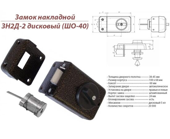 Накладной замок ЗНД2 Медный антик предназначен для запирания входных дверей в офисе, квартире, подсобном помещении. Устанавливается на правосторонние и левосторонние двери. Предусмотрен 1 стальной ригель со 2 классом секретности замка. В данной модели запирание двери происходит автоматически при ее захлопывании. Замок ЗНД2Н надёжен и прост в установке и эксплуатации. В комплекте 5 ключей.