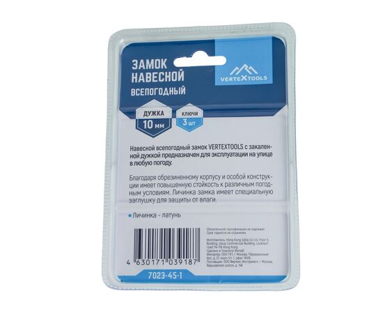 ЗАМОК НАВЕСНОЙ ВСЕПОГОДНЫЙ , 45мм VERTEXTOOLS