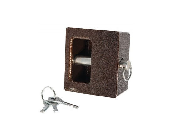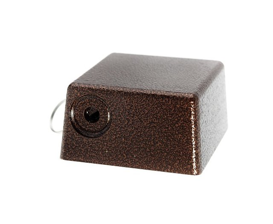 Навесной замок со скрытой дужкой. Конструкция корпуса ограничивает доступ к дужке и деталям навески.