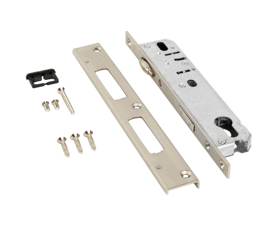 Врезные замки с роликом и под ручку, серии 7000, для дверей из ПВХ профиля. Межосевое расстояние 92 мм, ширина лицевой планки 16 мм.