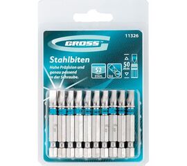 Биты применяются в качестве насадок для ручного и механического иструмента. Основу биты составляет шестигранный хвостовик размером 0,6 см (1/4 дюйма). Длина биты 50 мм, тип шлица - PH1 (крестообразный). В качестве защиты от контрафакта на каждой бите присутствует цветное кольцо с...