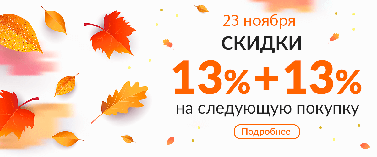 СКИДКИ 13%+13% НА СЛЕДУЮЩУЮ ПОКУПКУ!