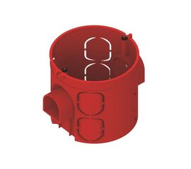 Распределительная коробка/корпус для монтажа в стене и в потолке Характеристики: Глубина -  62мм Степень защиты IP - IP20 Цвет - Красный Диаметр - 64мм Форма - Круглая Количество входов, вводов - 11 Фиксация устройства - Винтовой