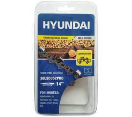Цепь 35 см 14" 3/8'' 1.3 мм 52 звена, HYUNDAI 38LSD352PRO Характеристики: Длина шины: 14" Шаг цепи: 3/8 Толщина ведущего зуба: 1,3 мм Количество звеньев: 52