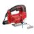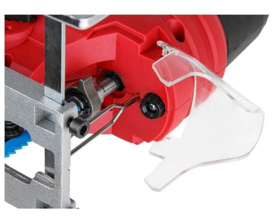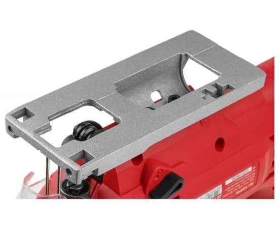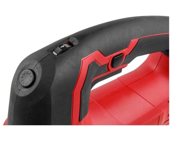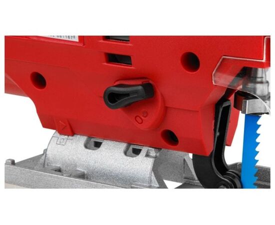Лобзик оснащен удобной, эргономичной прорезиненной рукояткой, для быстрой замены пильных полотен предусмотрен быстрозажимной патрон, наличие маятникового движения с направляющим роликом, позволяет производить быстрые и при этом ровные пропилы. Литая алюминиевая подошва регулируется под разными углами. Возможно подключение пылесоса. Регулировка скорости позволяет использовать лобзик для реза различных материалов. Есть подсветка рабочей зоны.