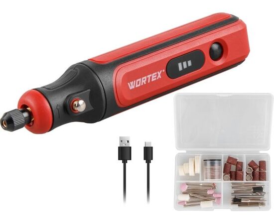 Аккум. гравер предназначен для тонкой и аккуратной обработки предметов, с его помощью можно выполнять различные операции, такие как шлифовка, резка, гравировка, фрезерование, чистка и полировка. Имеется регулировка и удобный индикатор скорости вращения с 3 светодиодами. Большой набор аксессуаров в комплекте расширяет сферу применения модели. Гравер оснащён встроенным аккумулятором, содержит в комплекте USB - TYPE C кабель для зарядки. Адаптер в комплект поставки не входит!