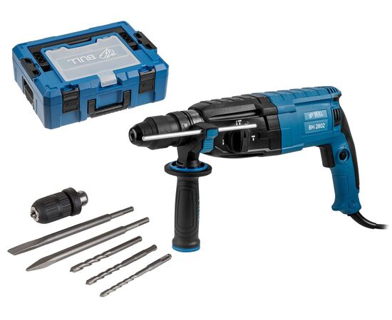 Перфоратор BULL BH 2802 в чем. Xcase 850 Вт, 3.2 Дж, 28 мм, 4 реж. + 2 зубила, 3 сверла, БЗП