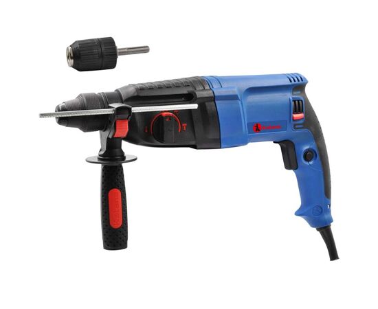 Трёхрежимный перфоратор с большим запасом мощности. Подходит для бурения бетона, камня, кирпича, сверления дерева, пластика и металла. Без проблем разрушит кирпичную кладку, пробьёт штробы и борозды.