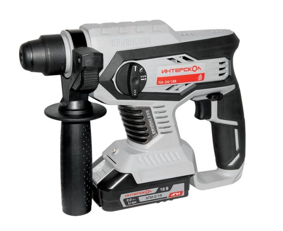 Аккумуляторный перфоратор ИНТЕРСКОЛ ПА-24/18В идеален для работы в местах, не оснащенных электричеством. Имеет три режима: сверление, сверление с ударом, долбление.