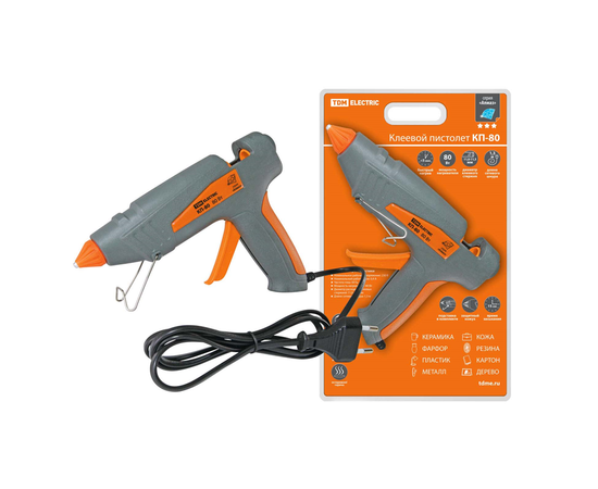 Клеевой пистолет и клей предназначен для склеивания широкого спектра материалов, для герметизации швов, для закрепления элементов печатных плат, проводов. Корпус клеевого пистолета из АБС-пластика, нагревательный элемент из высококачественной меди, защитный наконечник из термостойкой резины.