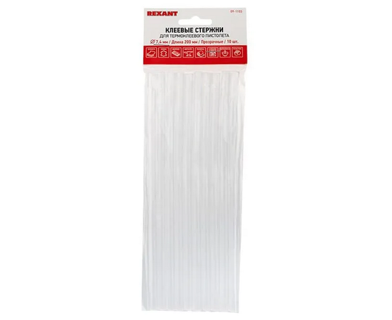 Клеевые стержни d=7 мм, 200 мм, прозрачные, (10 шт./уп.) REXANT