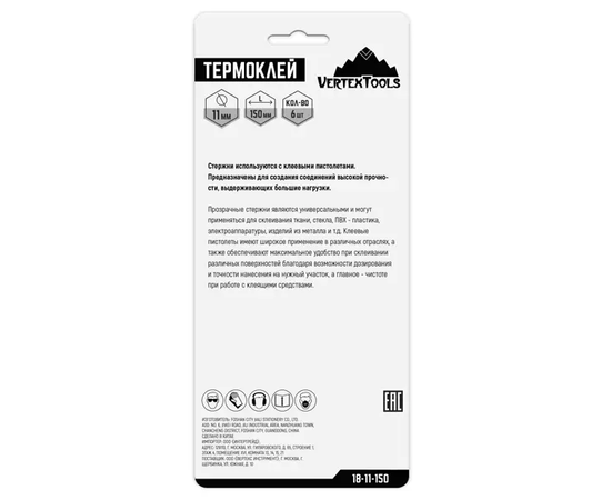 ТЕРМОКЛЕЙ 11х150 мм 6 предм. (1/ 144)