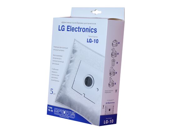 Мешок для пылесоса АЛЬФАК LG-10 5 штук ‒ это синтетические одноразовые пылесборники-мешки для пылесосов Lg, Clatronic, Rolsen и др. TYPE TB-36. В комплект входит 5 пылесборников. Произведены из экологически чистого, многослойного синтетического фильтрующего материала.