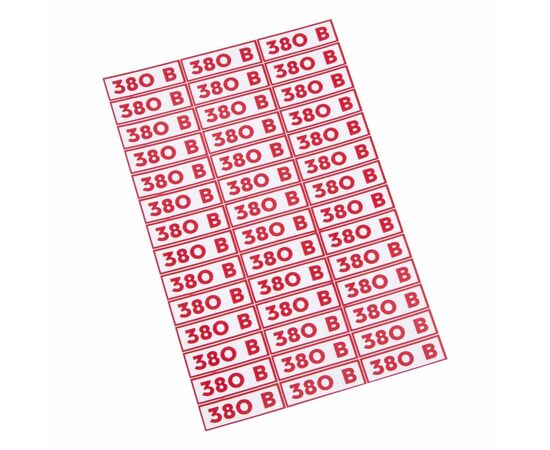 Знак электробезопасности (наклейка) указатель напряжения «380 В» - это информационный знак, который размещается для информирования о напряжении в электрической сети, около розеток и выключателей. Такие наклейки предназначены для предупреждения и информирования окружающих, а также для организации мест работы электромонтажных бригад, несут дополнительную информационную нагрузку.