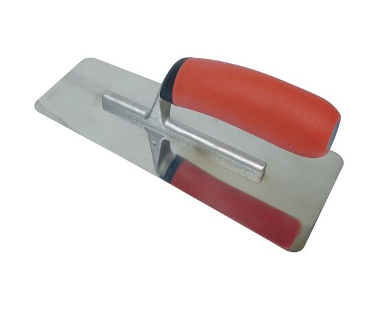Размер 200х80х0,6 мм., кельма из нержавеющей стали, края сточены, ручка прорезиненная.