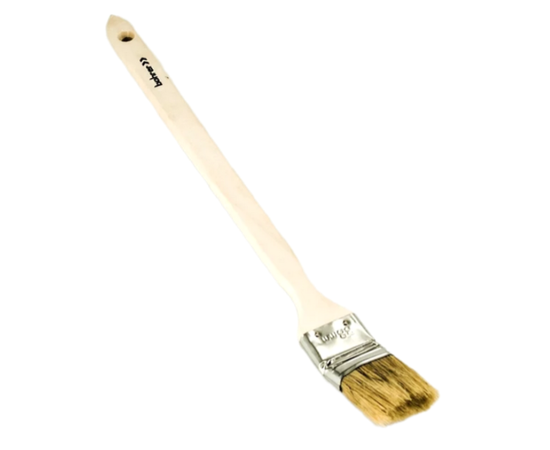 Кисть предназначена для прокрашивания радиаторов отопления. Модель имеет изогнутую форму и удлинённую ручку для удобства работы. Кисть достаточно узкая, чтобы проникнуть в труднодоступные места. Зауженный кончик служит для аккуратного нанесения краски. Качественная щетина обладает высокой впитываемостью и краскоотдачей.