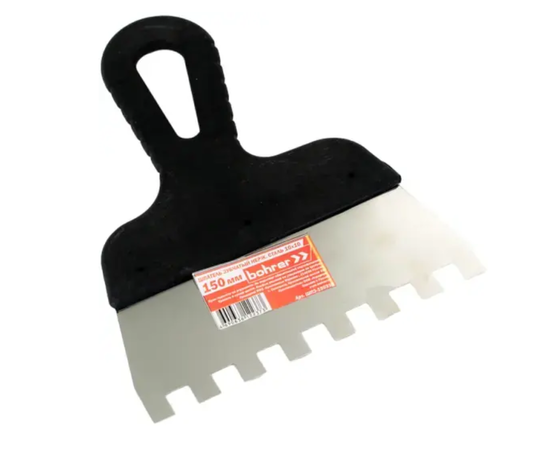 Шпатель зубчатый Bohrer (нержавеющая сталь 0,45 мм, пластмассовая ручка)