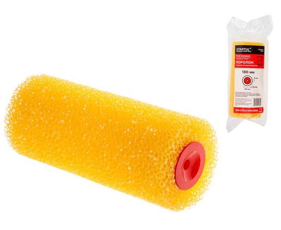 Технические характеристики: Материал: высококачественный поролон. Крупная шероховатая структура; Тип ЛКМ: для текстурных красок на водной основе (латексных, акриловых и силиконовых), декоративных штукатурок (за исключением штукатурки с добавлением извести) и низковязких шпатлевок, а также для нанесения специальных герметизирующих покрытий во влажных помещениях. При применении роликов этого типа для работы с алкидными красками и лаками необходимо иметь в виду, что поролон неустойчив к их растворителям и быстро теряет свои физические качества. Поролоновые ролики не могут быть использованы с красками, которые разбавляются ацетоном, этилацетатом, толуолом. При работе с негашеной известью поролон быстро теряет свои физические качества и может расслаиваться. Применяется для покраски стен и фасадов для создания крупноструктурной поверхности. Дает крупную шероховатую структуру; Высота поролона, мм: 20; Диаметр основы, мм: 40; Общий диаметр, мм: 80; Длина ролика, мм: 250; Диаметр отверстия под бюгель (ручку), мм: 8; Количество в упаковке: 1; Упаковка: индивидуальная упаковка с отверстием под крюк; --- Совместимые товары: ST0224-25 Ручка для ролика ф8мм, 250мм STARTUL MASTER; ST0200-8-25 Ручка для ролика ф8мм, 250мм двухкомпонентная STARTUL PROFI; ST0225-25 Ручка для ролика ф8мм, 250мм трехкомпонентная STARTUL PROFI; ST0811-02 Стержень телескопический алюминиевый 1,15-2м STARTUL PROFI; ST0811-03 Стержень телескопический алюминиевый 1,5-3м STARTUL PROFI;