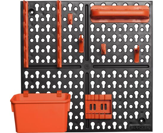 Панель помогает экономить место на рабочем столе, содержать в порядке и быстро находить необходимые инструменты и приспособления. Идеальна для использования дома, на даче, в гараже, мастерской. В комплектацию входят набор из двух типов крючков, держатели для отвёрток, свёрл, ключей и лоток для метизов. Монтаж на вертикальную поверхность осуществляется с помощью саморезов.