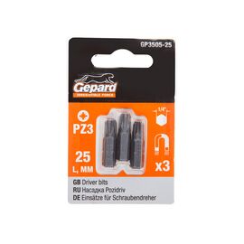 Насадка крестообр. PZ3 25мм 3шт GEPARD (бита Pozidrive позидрив сталь S2 магн.)
