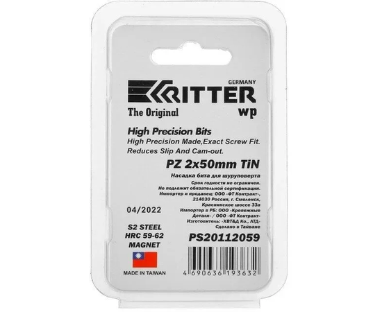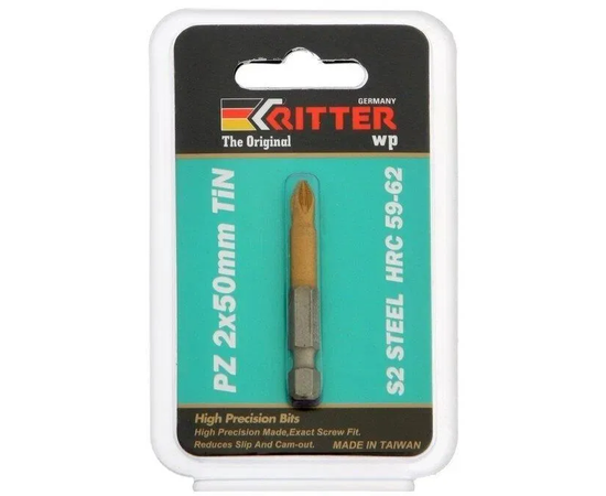 Бита Ritter WP PZ 2x50 мм (TiN покрытие, сталь S2) (1 шт. в блистерной упаковке)
