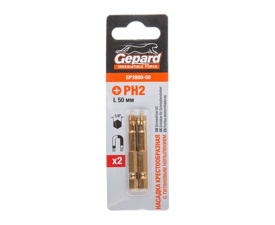 Насадка крестообразная PH2 50мм 2шт с титановым напылением GEPARD