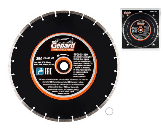 Алмазный круг 350х20/25.4 мм по бет. сегмент. GEPARD (сух резка)