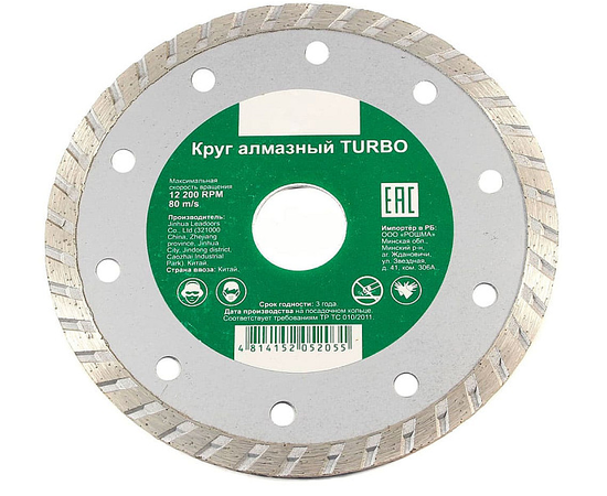 Круг алмазный Рошма Turbo 230*2.8*22.2 мм применяется для разреза изделий из кирпича, бетона, камня, керамической плитки. Не требует водяного охлаждения.