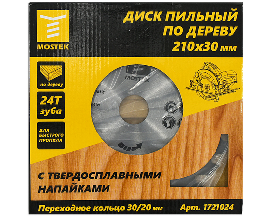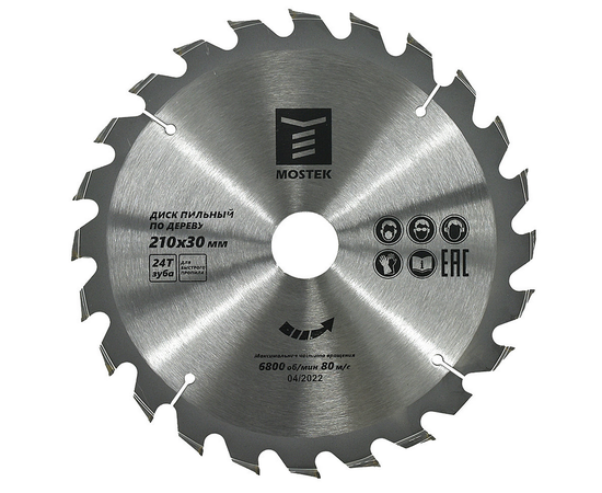 Диск пильный по дереву MosTek 210x30/20 мм, 24Т зуба