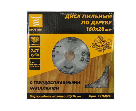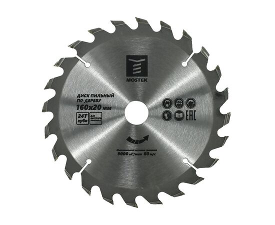 Диск пильный по дереву MosTek 160x20/16 мм, 24Т зуба