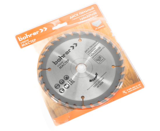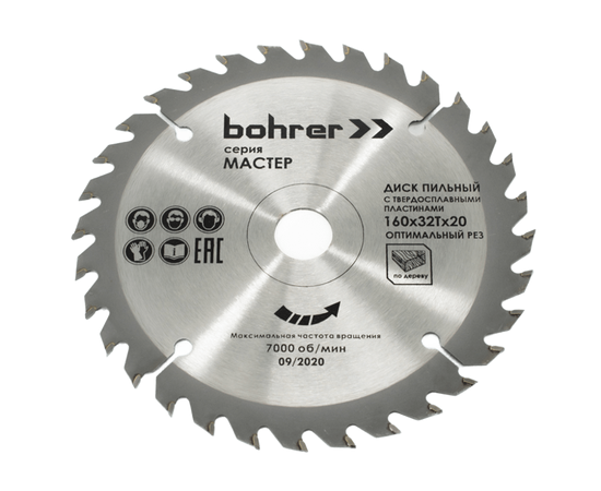 Диск пильный тв. по дереву Bohrer Мастер 160x20/16 мм, 32Т зуба (оптимальный рез)