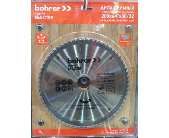Диск пильный тв. по ламинат/пластику Bohrer Мастер 200х32/30 мм,48Т зубьев