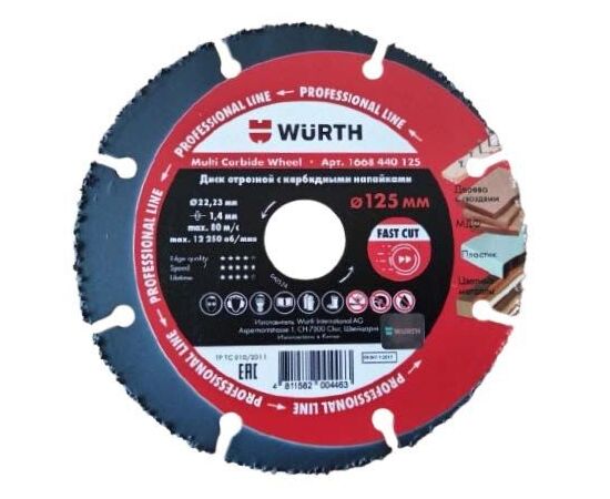Диск отрезной с карбидными напайками 125х22,23мм WURTH