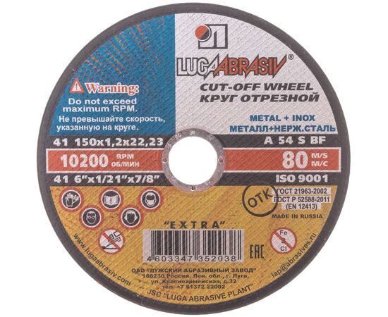 Круг отрезной 150*1,2*22,2 мм для металла LUGAABRASIV