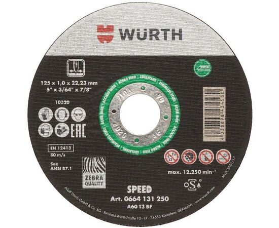 Круг отрезной D 125х1,6 мм, прямой, SPEED нерж. сталь