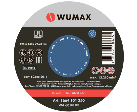 Круг отрезной WUMAX D125х1,0 мм, прямой, сталь