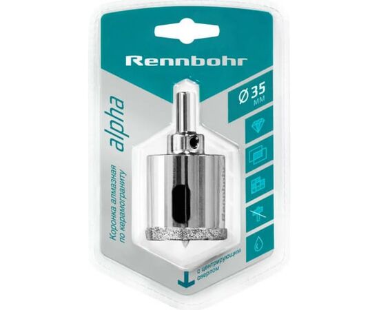 Коронка алмазная с центрирующим сверлом по керамограниту и керамике 35мм "Rennbohr"