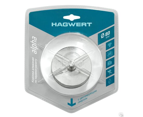 Коронка алмазная с центрирующим сверлом по керамограниту и керамике 80мм "Hagwert"