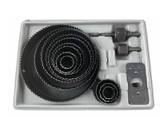 НАБОР КОЛЬЦЕВЫХ ПИЛ ПО ДЕР,19, 22, 29,32, 38, 44, 51, 67, 76, 89, 102, 127 мм 16 шт. (1/ 30)