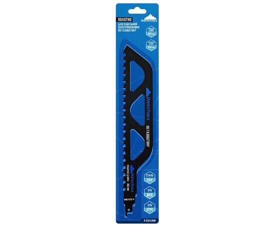 Полотно для сабельной электроножовки по газобетону 305 мм vertextools K-S1243HM предназначено для резки:газобетона,кирпича,пенобетона,шлакоблоков,гипсовых плит,ЦСП,пенопласта с помощью сабельной пилы.Изготовлено из инструментальной стали 65МN и оснащено твердосплавными напайками ВК8. Имеет длительный срок службы.Рабочая длина - 260ммЗуб - ВК8Зуб - 2TPIСталь - 65MNОбщая длина - 305мм