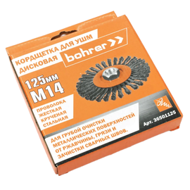Кордщетка Bohrer дисковая витая жесткая 125 мм (толщ. проволоки 0,5 мм) для УШМ
