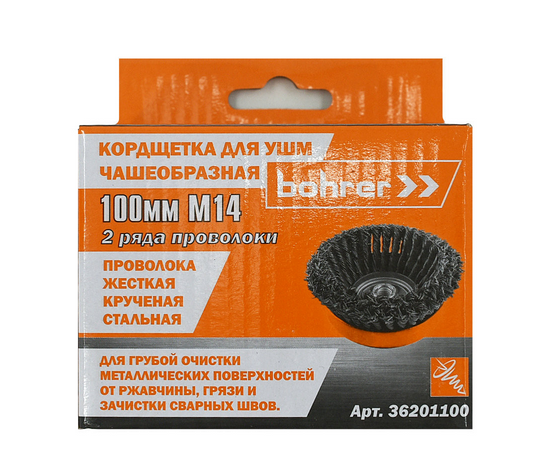 Кордщетка Bohrer чашеобразная двухряд. витая жест. 100 мм (толщ. пров. 0,5 мм, М14) для УШМ