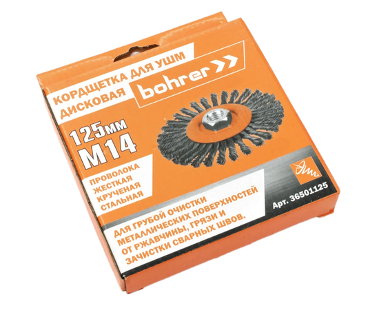 Кордщетка Bohrer дисковая витая жесткая 125 мм (толщ. проволоки 0,5 мм, гайка М14) для УШМ