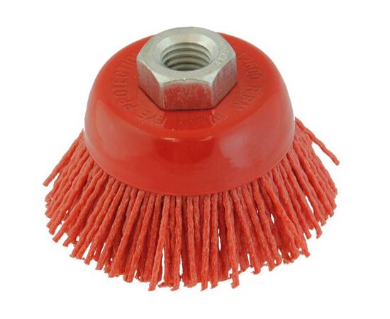 Щетка чашечная 65 мм (нейлоновая) используется для очистки металлов от ржавчины, грязи и сварных швов.