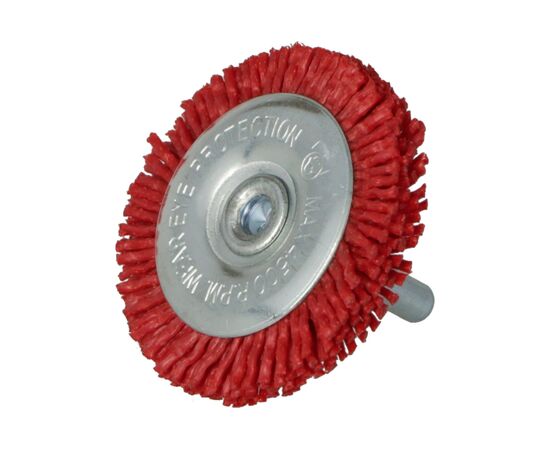 Щетка нейлоновая 100 мм, с хвостовиком FASTER TOOLS 3835 для легких и средних работ по очистке. Для удаления ржавчины, истирания, снятия заусенцев, удаления лака.