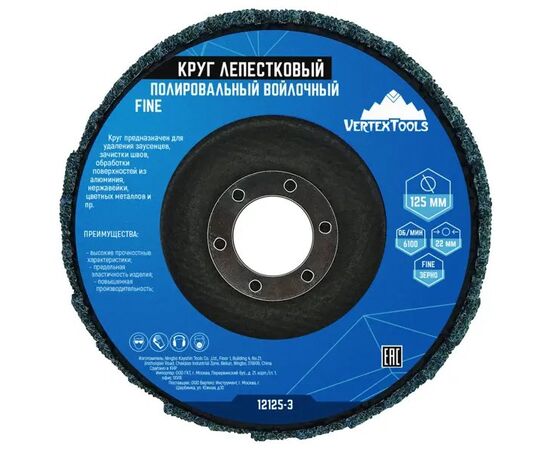Круг лепестковый Vertextools позволяет удалить заусенцы, зачистить швы, обработать поверхности из алюминия, нержавеющей стали, цветных металлов. Он изготовлен из войлока - материала, который отличается повышенной прочностью, небольшим весом, пластичностью, может удерживать пасту для полировки. Лепестковые круги применяются на стационарных станках и на ручном шлифовальном инструменте.