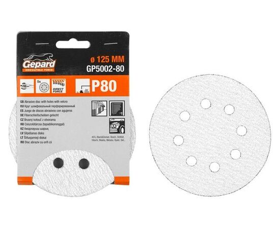 Шлифлист 125мм круг Р40 д/краски 8 отв. 5шт. GEPARD